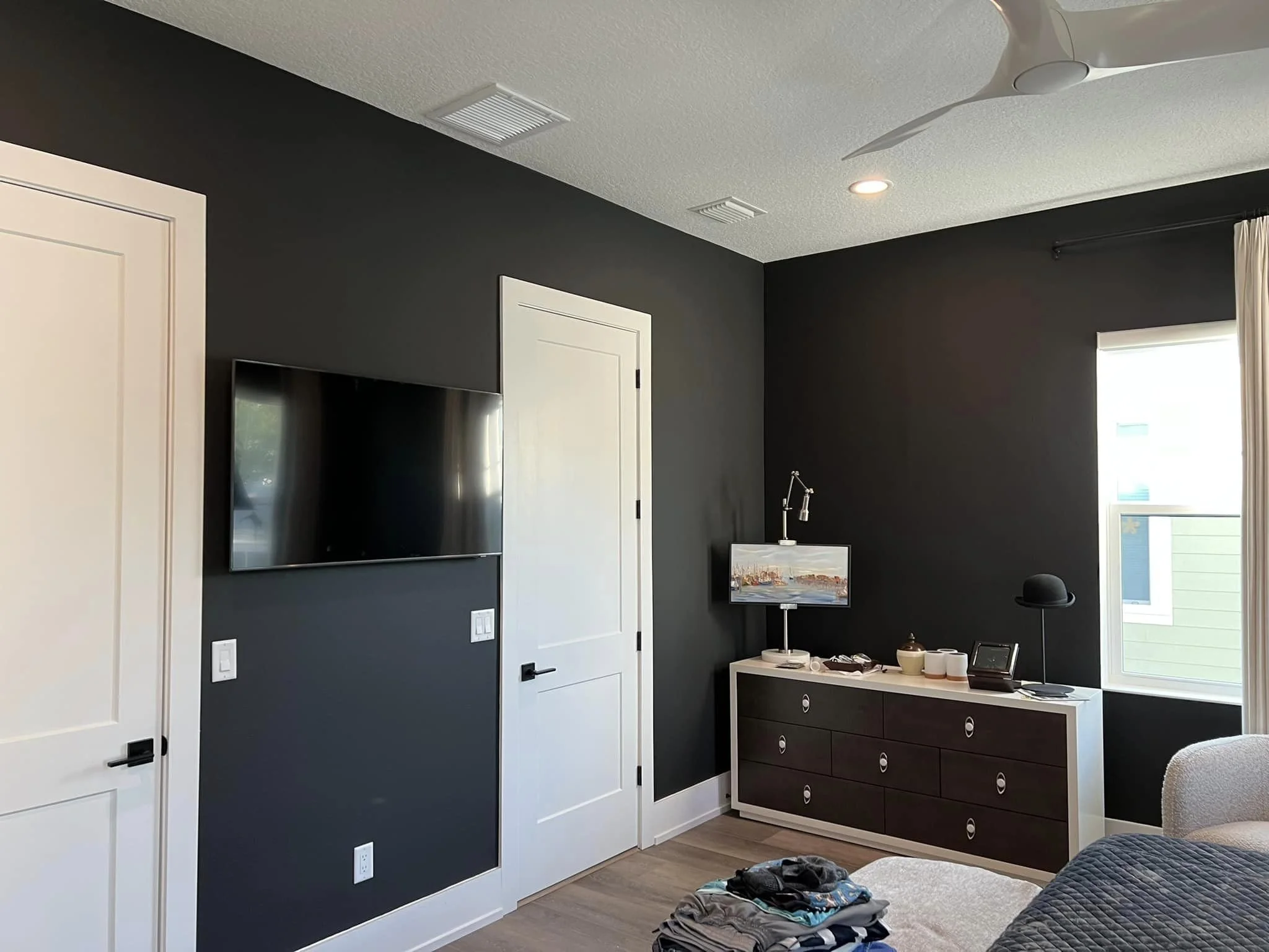 “Use Tape lines along your baseboard and against the sides of your door and window frames. They give crisp, clean edges to the geometry of your interior.”